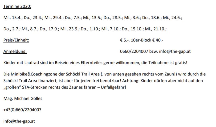 Hier die weiteren Termine des Jahres – Achtung, findet in dieser Altersgruppe nur bei trockenen Trails statt…